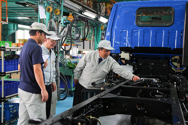 成車下線,一手催生「中華新達」的劉總經理難掩興奮之情,除了特別感謝同仁齊心協力打造新車,共同為中華商用車市場開創新局外,也致贈每位同仁送下線慶祝蛋糕,共享新車誕生之喜。